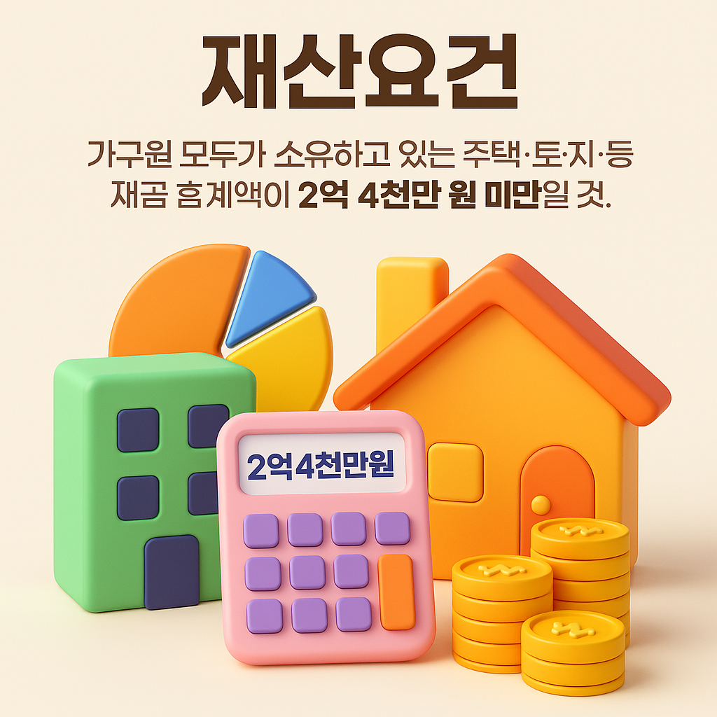 - 가구원 전체 재산 2억 4천만 원 미만 (2024년 6월 1일 기준)