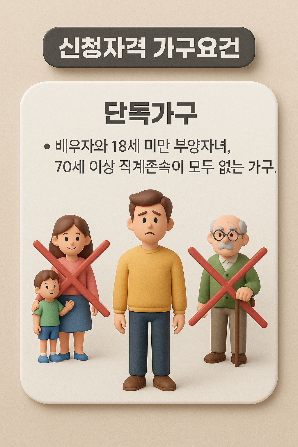 - 단독가구: 소득 2,200만 원 이하