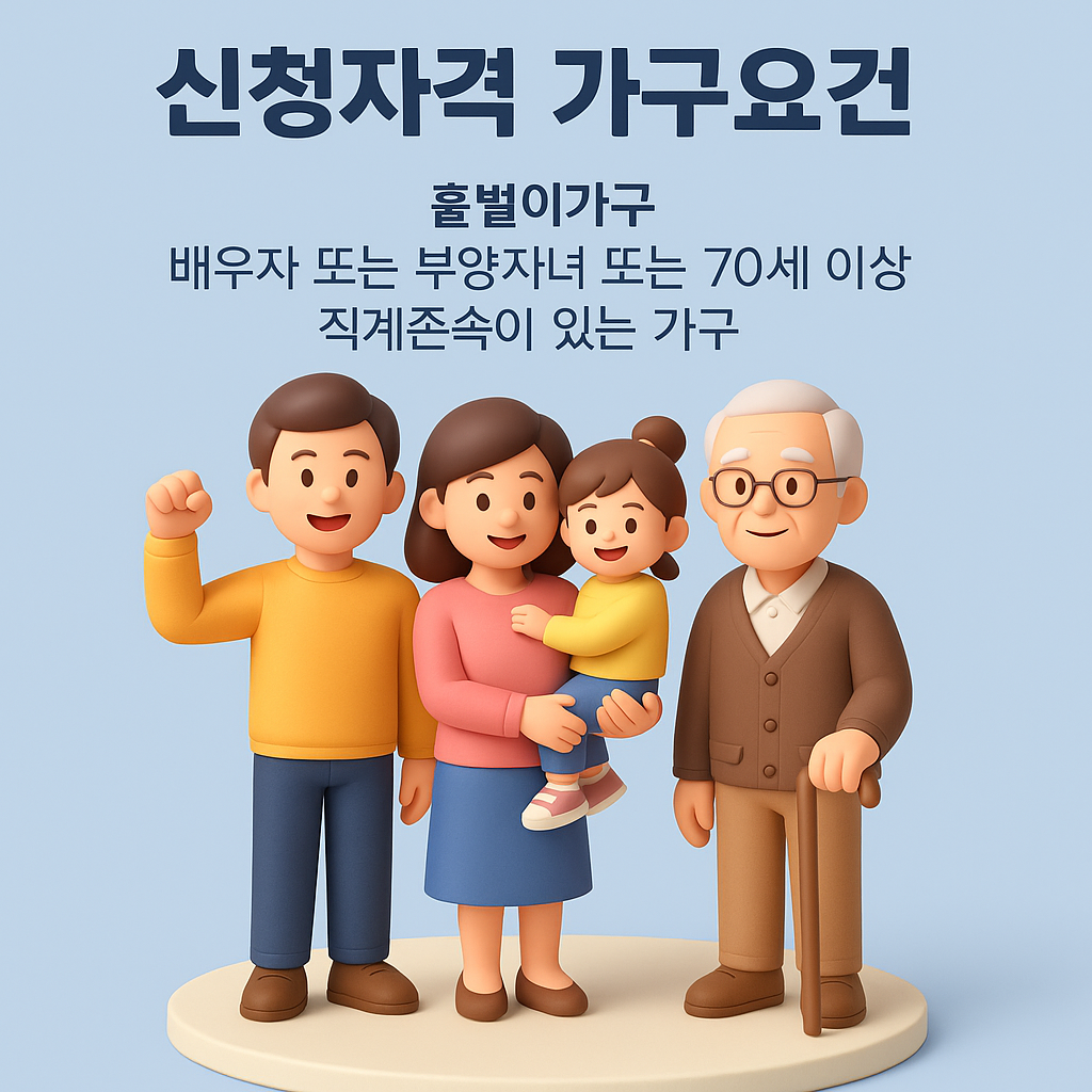 - 재산 기준: 가구원 전체 합산 2억 원 이하