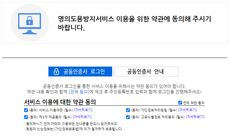 명의도용방지서비스 등록
